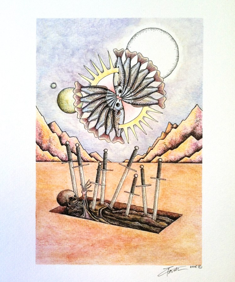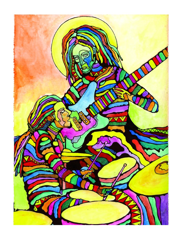 Commissioned album art for the psychedelic rock group “Raja Khan” from Miami, FL. Their album “Sons” was released in 2010, along with this artwork, and a limited run of custom posters of the front cover image.